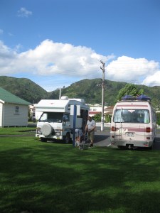 A quick drive around Thames and a visit to the iSite found us a free overnight parking spot on a quiet but central car park (with room for my parents who arrived shortly after in their camper). The two official spaces for self-contained campervans were kindly provided by Thames-Coromandel District Council who otherwise do not really like freedom camping. (I will definitely be blogging much more about self-containment and freedom camping – BIG issues!)